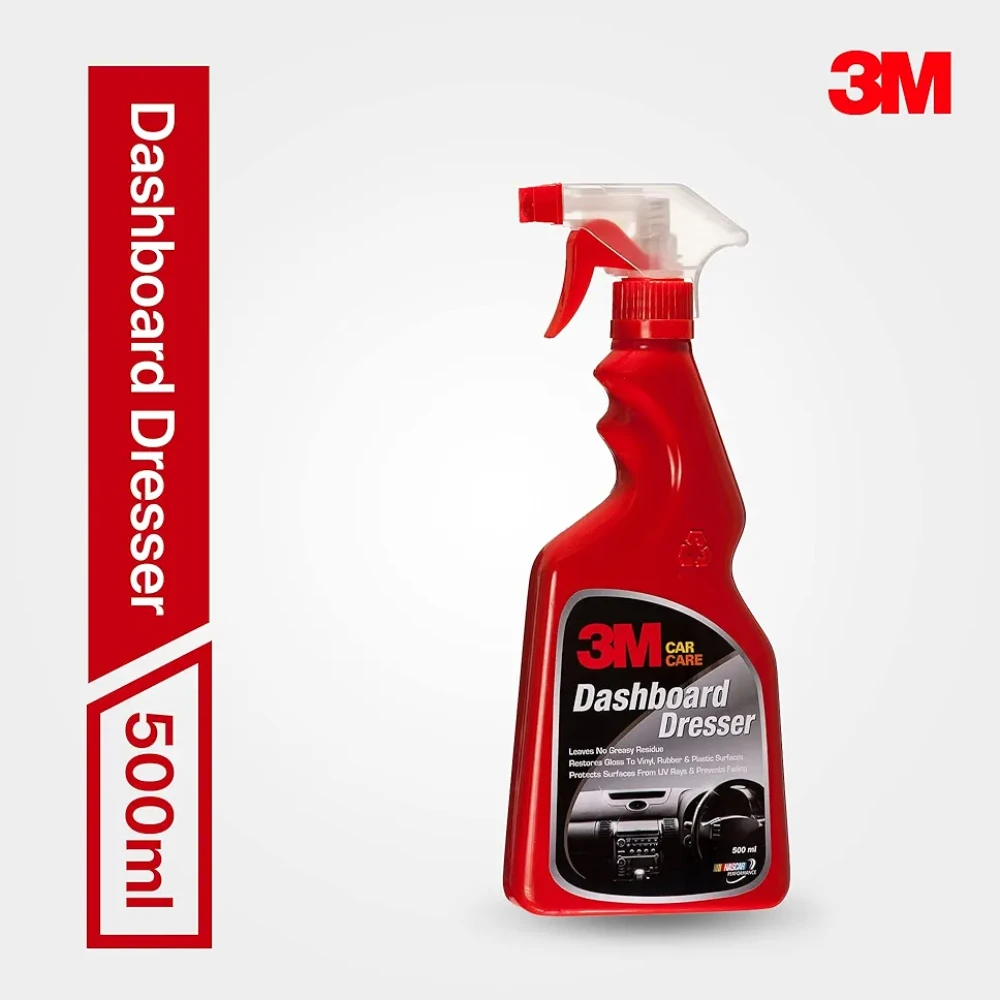 GLOSSY INTERIORS : Effectively restores gloss of car dashboards, door panels and trims. Keeps your dashboard looking brand new and sparkling in black.MULTI-SURFACE PROTECTION : Protects car plastic, vinyl and rubber surfaces from UV Rays and fading, bringing back glossy appearance of your car and making it look as good as new.EASY-TO-USE–The 3M Car Dashboard Dresser spray is an easy DIY (Do-it-Yourself) formulation that gives you a higher sheen and non-greasy finish.PLEASANT AND NEW LOOK : The clean glossy look and the pleasant fragrance makes your car interiors feel like they are as good as new and fresh.NON-GREASY :The formulation is non-greasy and does not leave any residue, while restoring the shine of your dashboard.