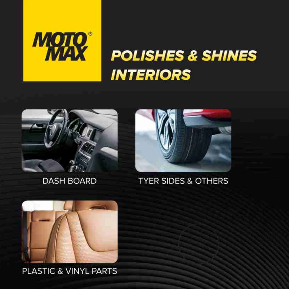 Restore, Protect and Prevent Car/Bike Interiors. The dashboard polish is a great alternative to a traditional car wash or car servicing which is expensive. By applying the Motomax Dashboard Polish, you can prevent the fading, drying and cracking of your car interiors and protect it from the damage of harsh UV rays::Prevent Car/Bike Interiors from Faded Interiors - Motomax Dashboard Polish helps keep your car interiors like dashboard shine and restore the shine of your dull, faded interiors::Economical and Easy to Use - The dashboard polish is a great alternative to a traditional car wash or car servicing which is expensive::UV Rays Resistant - The Car and Bike Dashboard Polish provides UV Rays protection to preserve the interiors of your car & bike. With harsh UV rays, rubber & vinyl interiors can be damaged. With the use of Dashboard polish, the car interiors are protected::How to Use – 1) Ensure that surface is clean & free from dust, rust, grease or oil. If needed, wash & dry the surface. 2) Take product on sponge applicator & spread it evenly on the surface 3) For dull & faded surfaces, two or more applications will be required